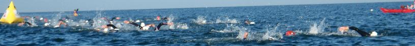 The sun was not yet breaking the blackness, yet on land we could hear the excitement of the athletes as we got into position for their swim. The at dawn the cannon went off and the race began. Wow, the sight of colored caps, arms, and feet breaking the surface is amazing. The sound as they passed by was like a hundred dolphins playing in the surf.