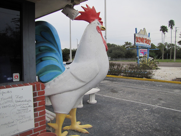 After the race several of us went to Skyway Jack’s. This is a local spot. Marked with a chicken out front. And it is one of the best places to go for old fashion food. Skyway Jack’s is at 2795 34th St. S in St. Petersburg; (727) 867-1907. It’s open 5 a.m. to 3 p.m. daily serving breakfast and lunch. I was so hungry I ate baked beans, kielbasa, a ham egg and cheese sandwich on wheat bread, a cornbread muffin with butter, and washed it down with a large glass of orange juice. YUM!