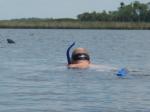 The sky was blue, the water was dark, and the air was hot. It was refreshing to swim and look deep into the sea grass. From the boat launch we traveled through a small creek into the brackish waters looking into the Gulf of Mexico. We tried for a few hours. We saw fish, manatee, and a dolphin swam past us. But no scallops for the picking.