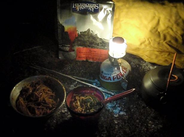 We went simple and ate Pad Thai by Backpacker’s Pantry, hot coco, and Freeze-Dried Mint Chocolate Chip Ice Cream. Yum.
