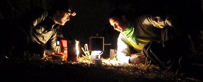 We set up camp and started boiling water for dinner. Sean and I both received some new pieces of kit during Christmas. And it was time to test it out. I got a Snowpeak GigaPower Stove, and Sean got a GSI Outdoors Pinnacle Dualist Cook System.