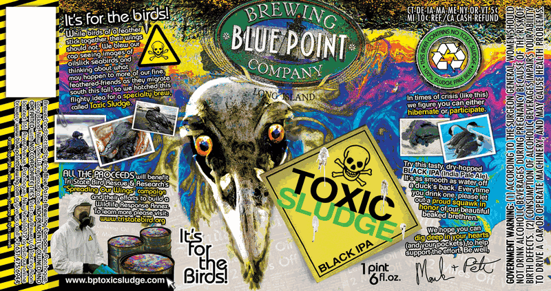 Today I did a little research and discovered we were drinking not only a dark IPA but also that our beer drinking dollars were going to a non for profit cause. Blue Point Brewing Company made and launched “Toxic Sludge” in August 2010 in response to the BP Oil Spill. And 100% of the proceeds go to Tri-State Bird Rescue and Research for their “Spreading Our Wings” Capital Campaign. There are only three disappointing things about this great thing that Blue Point is doing.