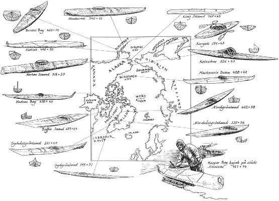 Then there is the additional variables to design. Hunters always modify their kit according to what they perceive as what is innovative. And that is why the picture below has so many variations of traditional qajaqs from Greenland to Alaska.