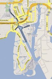 Before 8am Ron, Chad, a few others, and I left the dock and headed down River to our assigned locations for the race. I was at the marker next to Tampa General Hospital. And I had the Jose’ Gasparilla Pirate ship to the east.