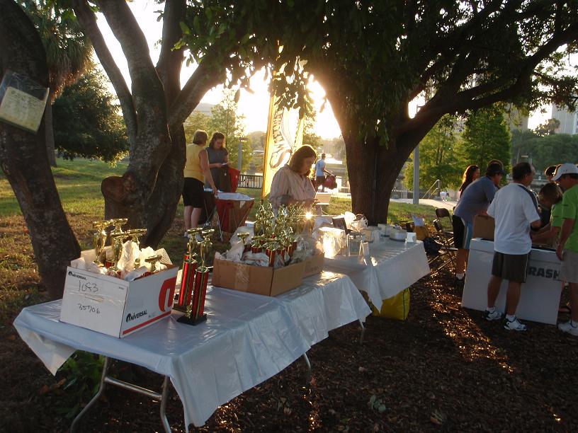 We began set up at the scenic Riverfront Park , downtown, on the Hillsborough River. There was a lot of volunteers helping move boats and paddle boards to the dock. I took a moment to scope out the trophies for the winners of the five mile race. And chat with Brody Welte owner of Stand up Fitness. He supplying several SUP’s and gear for this event. I think a few of his Paddle Fit students placed during the race.