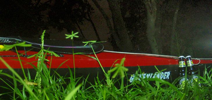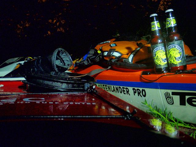 We chose to go paddling a few night ago to get the bugs sorted out of our kits. And comfort is going to be an issue for us. Sean is having an issue with the back band, and my left foot is falling a sleep. We ended our pre-paddle on one of our local spoil islands and Sean was most surprised when I offered him a dark bottle of Swamp Ape IPA.