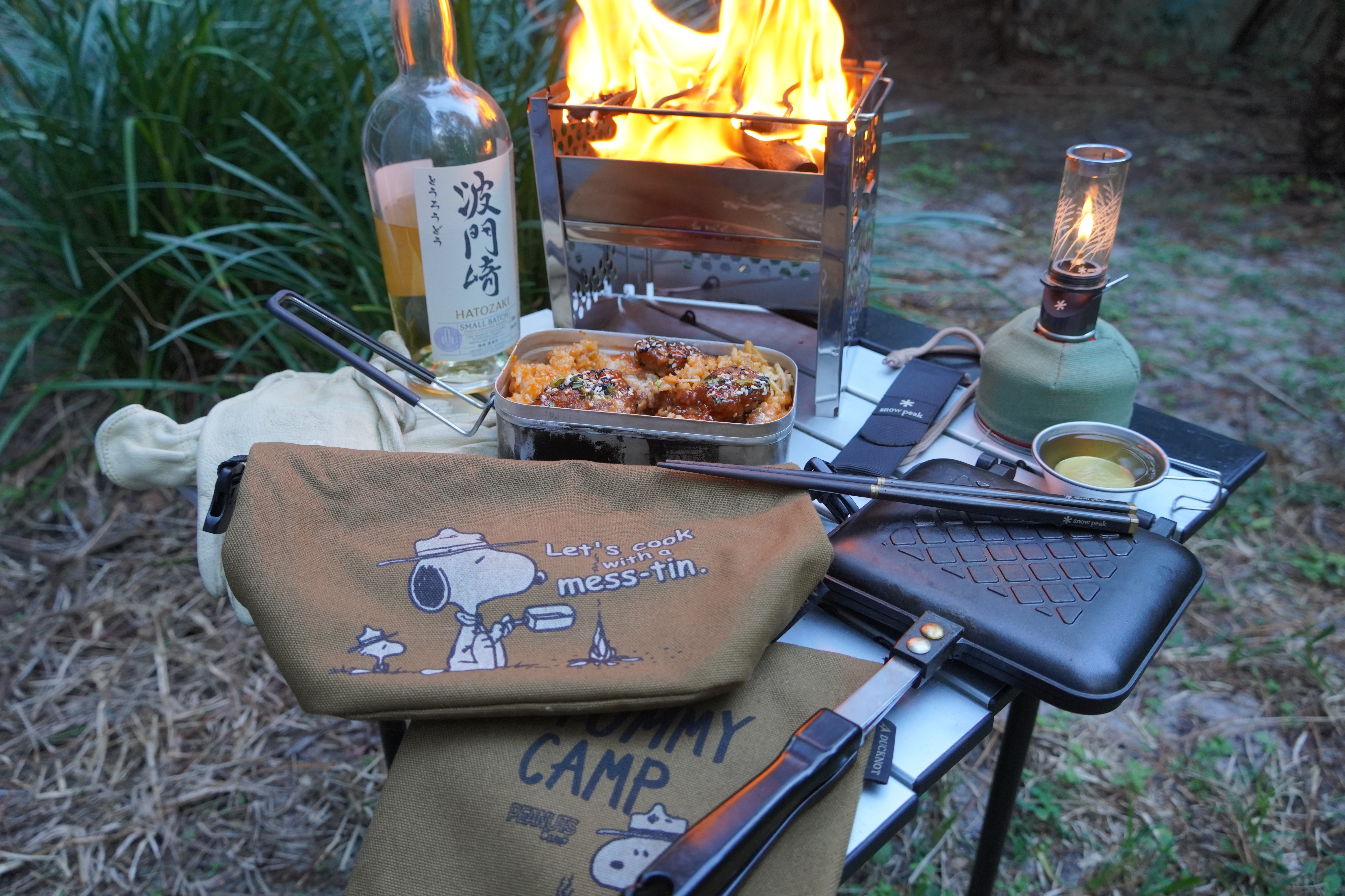 Camp Recipe with the Trangia Mess Tin, Hot Sandwich Maker, HUAXIAO Wood Stove, Wabuki Chopsticks, and Japanese Whisky