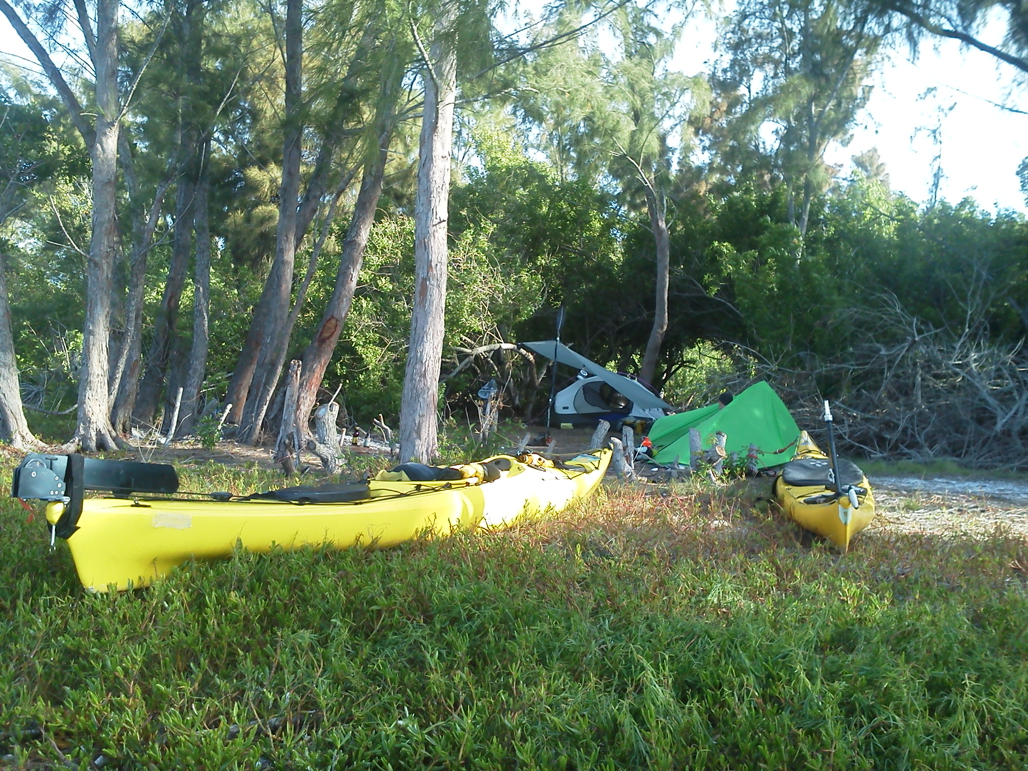 The kayaks were loaded with gear: ultralight tents, fresh water jugs, and enough cornbread mix to feed a small flotilla. After an afternoon threading through mangrove channels, we pulled up to a sliver of sand framed by Australian pines and soft, salt-kissed grass.