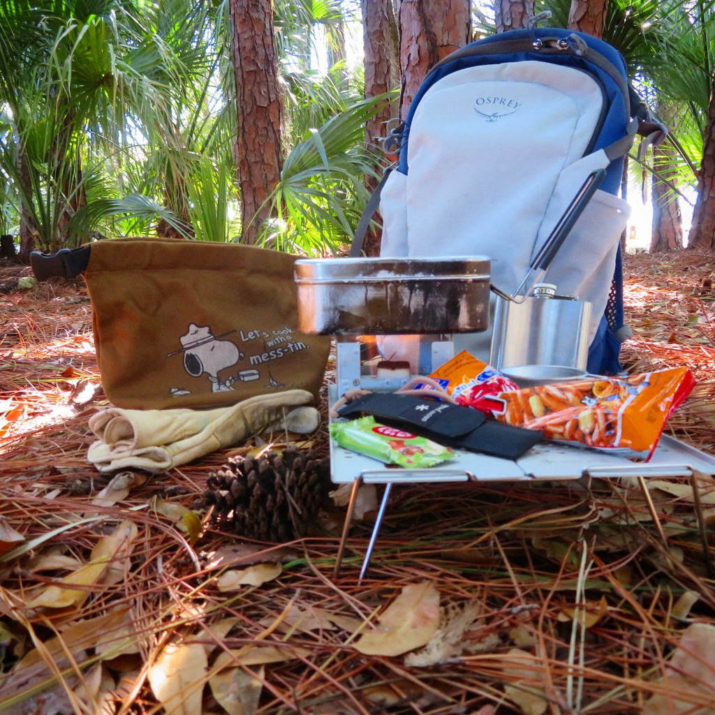 with the Trangia Mess Tin, Snow Peak Chopsticks, Mini Sierra Cup, Ozen Solo Table and Esbit Stove