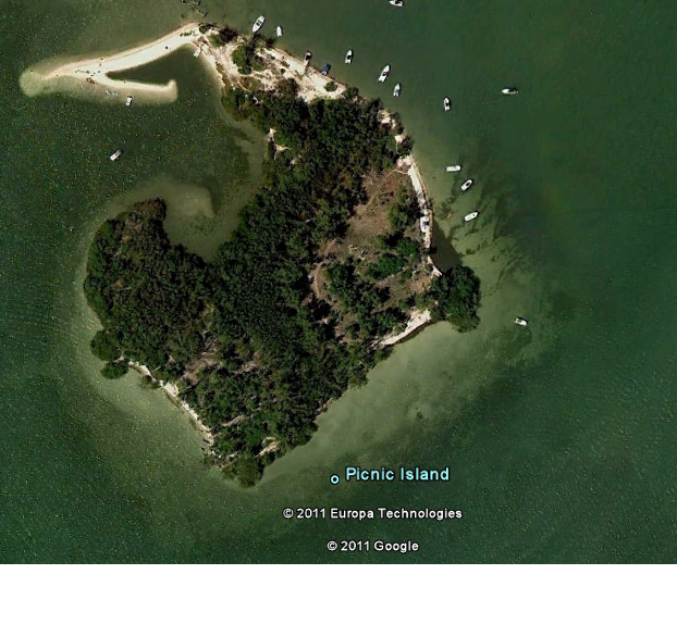 The journey continues by heading downstream to the mouth of the Caloosahatchee River and beyond. The destination for today is Picnic Island. Picnic Island located about three miles southwest of the mouth of the Caloosahatchee and about 1.5 miles southeast of Saint James City on Pine Island. If you are tracking their progress on Google Earth, it can be found at latitude 26°29’23.46”N, longitude 82°02’57.20”W.